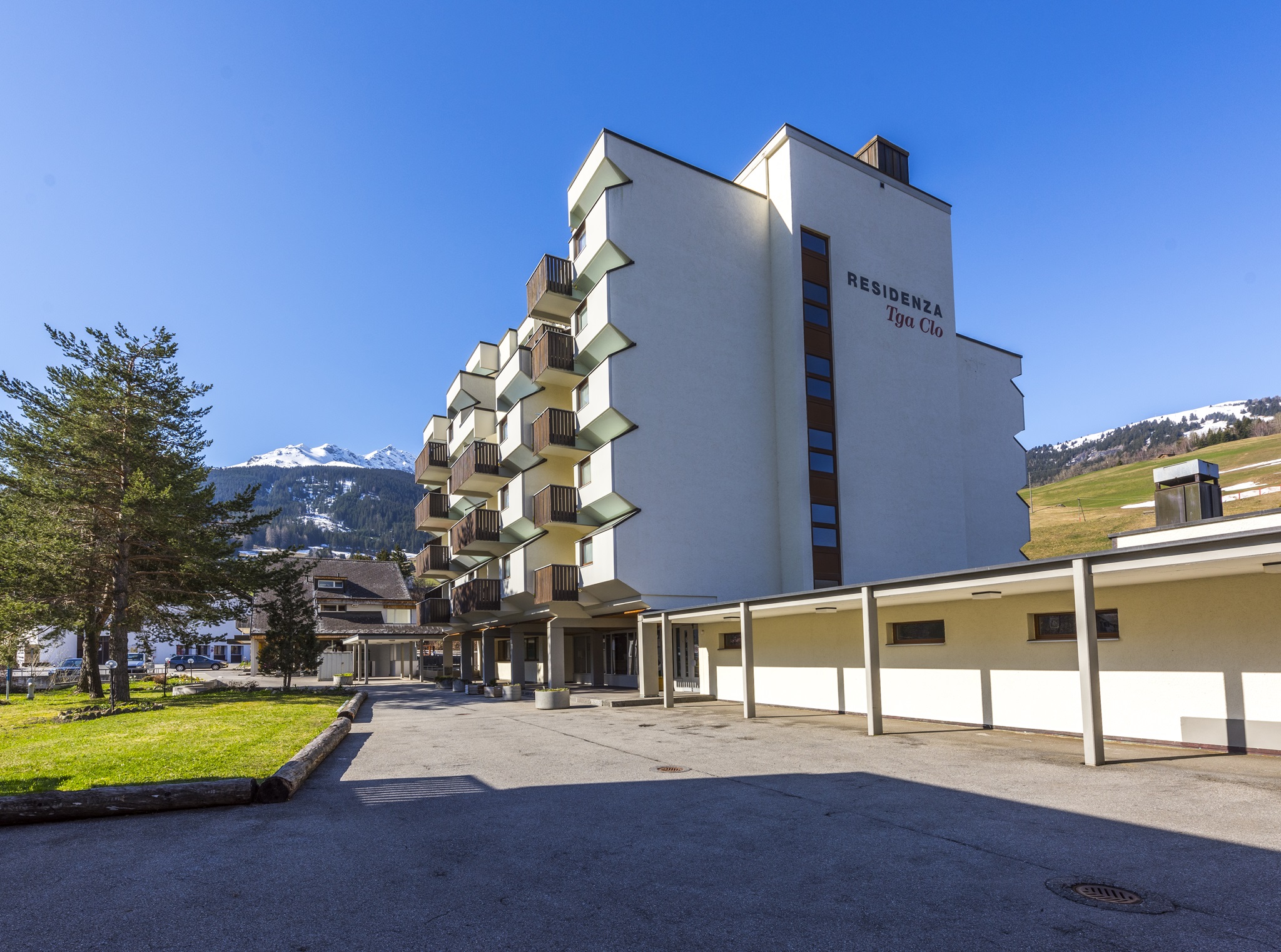 Das Appartementhaus Tga Clo liegt in der Talsohle direkt im Delta der Julia und der Schletg mit Aussicht auf die Berge, keine 100 Meter von der Talstation der Gondelbahn entfernt, in nächster Nähe der Schneesportschule im Winter und des Badesees im Sommer.